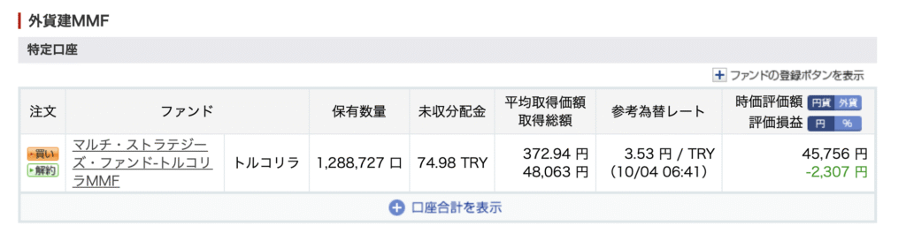 このトルコリラMMF、私も実際に5万円分を買ってみました。