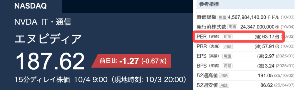 一般的には、**PERが低いほど“割安”、高いほど“割高”**と判断されます。