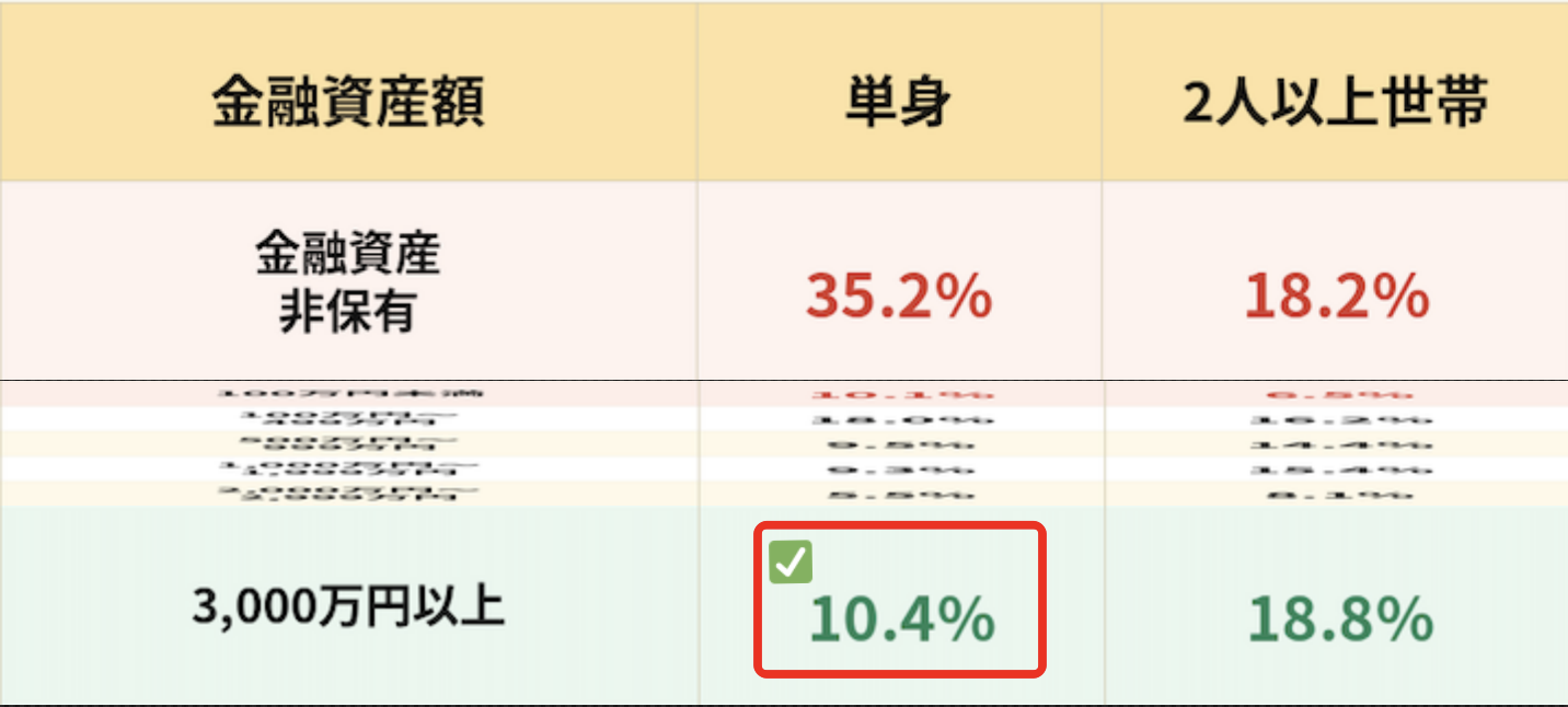 単身でも約10人に1人は、3,000万円以上の金融資産を持っているということです。